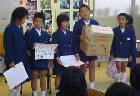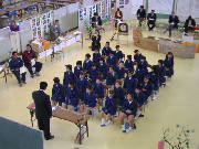| 玉名郡市の先生方訪問・三年生授業研究会 11月8日の午後、鳥飼先生が総合的な学習の授業をしました。「くだもの博物館を作ろう」と題して、3年生が果物について調べたことを発表しました。授業研究会ということで、玉名郡市から15人ほどの先生方が来校しました。他校の先生方が見守る中、○×ゲーム・デジカメ投影・紙芝居・劇・実物体験といろんな方法で発表してくれました。子どもたちの態度も発表の内容も、すばらしかったと思います。分科会においていくつかほめていただきました。この発表は博物館ですから、他学年にもする予定です。松村さんと畠山さんがお忙しい中にゲストティーチャーとして授業に参加し、子どもたちの発表について感想や意見を述べていただきました。ありがとうございました。 | ![]() |
