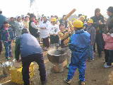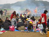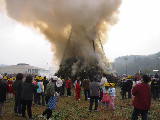休日にもかかわらず多くの方のご協力をいただき、大変感謝しています。子どもたちは地域の方とふれあい、楽しい一日を過ごすことができました。さて、7:30には山北小と木葉小のPTA役員が集合しました。いよいよどんどやの幕が切って落とされました。二校合同の大どんどやの開始です。6年生も重い竹を運び、やぐらの近くではひたすらミカンの枝を運びました。西川自動車の方にも毎年お世話になっています。お礼申し上げます。 | ![]() |