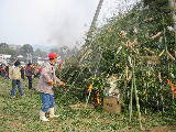 平成15年1月11日(土)に、玉東町木葉駅南の宅地造成地でどんどやを実施しました。今回はお隣の木葉小学校と合同で実施することになり、準備も大変でした。しかし、苦労して汗を流したあとの喜びは、何とも言えない充実感が残りました。