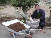 次の挑戦は大きな門松を作ることです。使用されていない大きなプランターがありましたので、これを利用することにしました。学校の敷地内に、松・竹・梅はいつでもあります。材料で困ることはありません。早速作業開始。