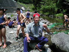 川に到着して最初にすることは、着替え(水着)です。その後担当の方が準備したヤマメが放流してありますので、そのつかみ取りです。自分で料理して、準備してある炭火で焼かなければなりません。一人一匹ですが、私はなぜか二匹食べました。昼食もとり、一時間ほど遊ばせました。水は冷たかったのに、子どもたちは元気よく泳いでいました。