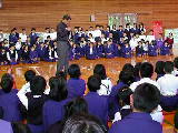 校長先生の挑戦 全校集会こま回し こまは伝承遊びです