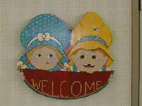 趣味のトールペイントで学校を飾ろうと考えています。しかし、心と時間の余裕がありませんので、たくさん作ることができません。現在は校長室の周辺で終わっています。最初の写真は40cm四方のウエルカムボードです。校長室の入り口に掲げました。(H12.10)