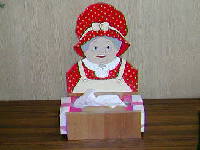 これは高さ30cm程度のティッシュペーパーホルダーです。校長室の机の上に置いていますが、たいへん役に立ちます。先生方もほしそうな顔をしていますが、15人分になりますと作るのも大変です。時間をかけて少しずつ増やしていきます。学校の内だけでなく、校庭の樹木にも作品を下げたいものです。