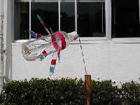 10月13日に作成した風車です。他の先生はもぐらおどしと言いますが、そのつもりで作ったのではありません。小型のペットボトルを利用しています。校長室の窓から見えるところに飾っています。ペットボトル用の電熱カッターを購入しました。1500円程度ですが、大変便利です。針金はハンガーを使いました。