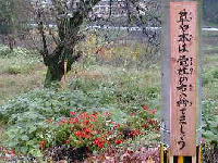 11月16日作成の看板です。「草や木は電柱の右に捨てましょう」と書いてあります。本校では除草した草は梅林に捨てています。電柱の左側は通路になっていますが、そこに捨てることもあります。そこで、この看板作成となりました。草を捨てる場所がたくさんあるということは、熊本市の学校では考えられません。
