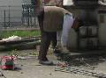 さて、次の品物が大変でした。縦横3m以上もある大きな防球ネットの切断です。直径5cmほどのパイプと鉄骨が組み合わされ、頑丈な作りになっています。このままでは、処分場に運べません。ネットは破れ、金属の足も一つありません。今日まで運動場に捨てられていた品物です。これが最後と考え切断したのですが、なかなか切れません。2時間もかかり、しかもこれだけでグラインダーの刃は6枚もつぶしたのです。何とか作業も終わり、紐で結んで不燃物置き場に運びました。