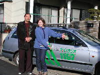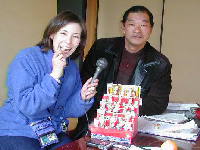 12年の夏、一度RKKラジオに出演したことがあります。そのときは校区の「放牛地蔵」の話題でした。今回はオリジナル作品「ピーナツのひな人形」です。ミミーキャスターの田代さんからメールで連絡を受け、取材の話が決定しました。平成13年1月15日(月)の午後1時半に、自宅へ「ミミー号」でやってきました。放送は3時からです。車の中で原稿を書いている間に、殻つきピーナツとヨーグルトをご馳走しました。放送の時間は5分間程度ですが、目の前にマイクを突きつけられると、いつもの通り緊張します。