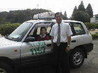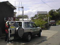 いよいよ放送開始1時間前です。車の屋根に大きなアンテナが取り付けられました。この後、キャスターの女性と放牛地蔵の前で打ち合わせをしたり、練習をして本番の時間を待ちました。次第に私の小さな胸は高まり、声は上ずりつつ額から汗が流れ落ちていくのでした。