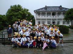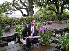 グラバー園の中に池があり、ちょうど花ショウブが咲いていました。そこで記念写真を一枚。子どもたちが言いました。「どんなに美しい花も、校長先生の前ではかすんでしまいますね。」 そのとおりです。