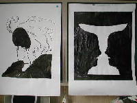 「だまし絵」は、中学校の国語の教材になっています。人の視覚による勘違いを利用したものです。錯覚の中の錯視と呼ばれるものです。ホームページ上で、素晴らしい資料も提供されています。写真の左は、若い女性になったりおばあさんになったりするものです。右は、つぼ(菓子器)になったり大人二人の向かい合う顔になったりするものです。