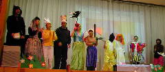 昨年は一年生国語教材の、「大きなカブ」でした。今回は衣装と小道具に力をいれました。衣装は近所の山北保育園からお借りして、小道具は得意な先生が作りました。出演者は先生方14名、全員参加です。仲良しの山北保育園副園長先生にも参加していただき、王子様を演じてもらいました。毎年保育園からの出場もあり、園児たちも喜んでくれました。農閑期ということもありますが、宣伝が行き届き、200名ちかくの参加がありました。