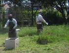 山北の友人がやってきて、中庭での作業をしてくれました。友人五人は分担して、プランターの移動と整地、そして校庭の草刈りをしたのです。山北小学校を去って四年になりますが、人と人のつながりは大切にしてきました。わざわざこの日のために、草刈り機を購入した人もいたのです。(8月22日) |