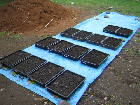 京陵中学校には、数箇所の花壇と多数のプランターがあります。これらに花を定植するには、たぶん5000個以上の苗が必要でしょう。苗1個を50円とすると、25万円になります。春と秋の二回ですから、合計50万円。無理な話ですから、花は種から育てなければなりません。左の写真は、9月18日の種まき作業です。14日にキンセンカの種まき、18日にはノースポール・帝王貝細工・ゴデチャをまきました。その後、キンセンカ・石竹・ナデシコの種を追加しました。