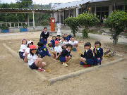 ここは砂場だとわかると、1年生から3年生の子どもたちが集まるようになりました。砂場には移植ゴテを20本ほど入れた箱も置きました。休み時間ともなると、15人ほどがいつも遊んでいます。大変な作業でしたが、子どもたちの笑顔を見て、疲れも取れました。完成は平成14年10月21日です。