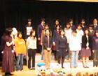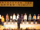 第二部になり、最初の曲目は「ちいちゃんのかげおくり」です。生徒も服を着替えました。この曲は戦時中の出来事を題材にしたもので、悲しい物語になります。会場は静まり、司会者の朗読も悲しみを誘います。さて、この後は[卒業生のコーナー]になりました。