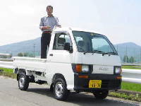 ついに買ってしまったのです。山北小学校へ来て三年目の夏、軽トラックを購入しました。13700km走行の中古車でしたが、ほとんど無傷のトラックです。平成14年7月13日、販売店に受け取りに行き、自宅へ持ってきました。ダイハツ・ハイジェットといい、平成10年登録になっています。早速畑へ運転し、記念撮影となりました。本当は、教師を退職したら購入するつもりでした。維持費も安いし、高い買い物ではありません。エアコンなし、パワステなし、四駆でもなし、オートマでもなし、しかし働き者です。