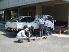 今年は大変暑い日が続きました。校庭の草も伸び放題で、何とかしなければなりません。ところが、平成18年8月22日(火)の午後、たくましい私の友人がやってきました。総勢5人。彼らは我家の仕事をやめて、私のために草刈りに来たのです。2トントラックが2台、草刈り機が4台、そしてパワーショベルも持ってきたのです。