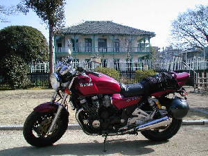平成13年2月11日の午後2時に訪れた場所は、洋学校教師館・ジェーンズ邸です。二ヶ月ほど前にも来たのですが、工事中でした。場所は熊本市の水前寺公園の近くにあります。電車通りから細い路地を入りますので、バイクにしました。
