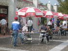 急がないと朝市が終わりますので、早速商店街に入り、仲間と朝市見学です。まだ人通りは多かったのですが、10時半頃が一番いい時間帯とか聞きました。きっと店じまい前の安売りが始まるからです。数多い露天は、イカの干物や一夜干しがほとんどでした。もちろん海産物や食料品、雑貨も並んでいます。