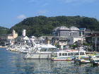 潮の香りがする呼子の町は、イカで有名です。それほど大きな町ではありませんが、日本三大朝市をメインにして、観光にも力を入れている町です。駐車場は完備していて、大型の観光バスも五台ほど駐車していました。港に係留されている漁船は、ほとんどがイカ釣り用です。