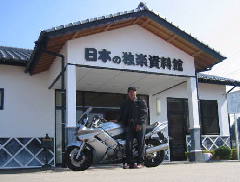 せっかくの三連休ですから、せめて一日はバイクで走りたいものです。平成15年10月11日(土)、以前から出かけたいと思っていた「日本の独楽資料館」を訪問しました。資料館の場所は、福岡県飯塚市立岩1122−1、国道201号線沿いです。飯塚市役所の前を東へ進み、筑豊本線の陸橋を超えて500mほど進んだ場所にあります。左側に大きな看板がありますから、捜しやすいと思います。