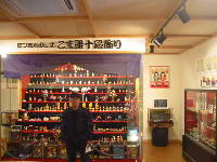 この写真は、こま2500個を展示した「こま雛十段飾り」です。全国のこまのほとんどが、ここに展示されているようです。圧巻なのは高さ3m、重さ8トンのこまがあることです。上下が支えてありますが、手で回すことができました。