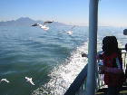 島原港までの一時間は何もすることがありません。デッキではかわいい女の子が、カモメにエビセンをやっていました。カモメも慣れていますね。さて、島原港に到着して出発したのは11時10分でした。