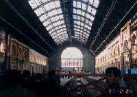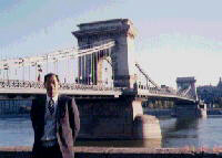 | ここが駅だとわかりますか。オーストリアから列車で3時間、もっと明るいイメージを期待していました。とにかく降りて外にでました。それが中の写真です。後で考えれば、街の外れだったようです。人通りは少なく、古い型の車だけが目につきました。すぐ近くを三輪車が走り過ぎたのを記憶しています。右の写真はドナウ川にかかるかの有名な鎖の橋です。この写真は、お気に入りになっています。 | ||||