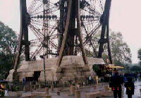| パリのエッフェル塔は、ホテルから歩いて15分くらいの所にあります。そこで、仲間と二人でかけました。巨大な鉄骨の建造物です。右の写真は、真下から写したものです。圧倒されます。中央の写真は土台の一つですが、この中にケーブルカーが通っています。最初の展望台で降り、次はエレベーターに乗り換えました。一番上の展望台は風が強く、寒かったのを覚えています。 | ||||