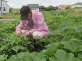 昼食・テレビは鑑定団。2時福井農園に行き、昨日の刈り草を集めて移動する。草の袋詰めは2個。カボチャを収穫したら、8個も取れた。ツクネの紐かけをして、ピーマンの収穫。帝王貝細工を北Eに作った花壇に移植する。ピーマンとナスに支柱を立てて、ハンマーで打ち込む。北Eに除草剤をかけ、5時に作業終了。役員と知人にカボチャを届け、笑点を見ながら晩酌と夕食。テレビを見て風呂に入り、9時に休む。