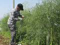 アスパラの茎は高さ2mくらい伸びます。 風で倒れるので、紐かけは必要です。 畑で乾燥中の国産ニンニクです。 |