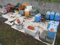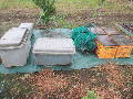 道具を入れたコンテナとネット類。 |