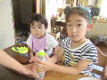 ナスの収穫は8本。少しずつ採れます。 2人の孫はすくすくと成長しています。 |