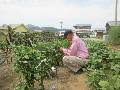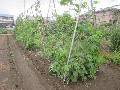 ミニトマトも順調です。少しずつ収穫が増えています。 ピーマンの紐かけです。枝が折れやすい野菜です。 |