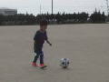 広いグラウンドで大喜がサッカーの練習です。