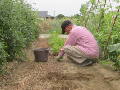 4時半過ぎに起床。日誌記入・今日の計画・農作業計画。紙出しをして、新聞とテレビ。2階で写真加工・HP入力・自治会入力をする。7時前に朝食を済ませ、手紙を出してくる。2階でPC作業を続けて、8時半に福井農園に行く。ナスとピーマンの収穫をして、西の畑のソラマメの根をすべて掘り上げる。ナスに支柱を追加。土作りをして、花苗をポットに移植する。メランポとセンニチコウが各1ケース完成する。11時過ぎに城山コミセンへ行き、インゲンをプレゼント。夏祭りの協賛金と青シソの苗をもらって帰宅。