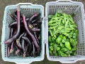 昼食・テレビは鑑定団。その後城山小体育館で参議院選挙の投票を行う。2時前に福井農園に行き、ナス・ゴーヤ・ピーマン・オクラ・キュウリを収穫する。かなり採れた。トマトに使ったネットを引き上げ、パイプにかけておく。ナスの枝を大きく切り詰めて、10株ほど終了。これは枝の更新のためで、やがて秋ナスがとれる。3時半に帰宅して、家内に野菜を渡す。家内は野菜を洗って袋に詰める。野菜セットを長男に届け、次男用にも野菜セットを作る。2階で写真加工をしていたら、次男家族か野菜を取りに来た。可愛い孫二人と遊ぶ。花蓮は私の顔を見ても、泣かなくなった。孫たちが帰ったので、風呂に入って晩酌と夕食。テレビを見て8時に休む。