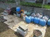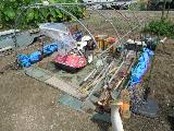 ハウスのシートを外しました。 耕運機と草刈り機が心配です。 軽い物が飛んでいくと心配です。 |