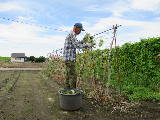 ネットからキュウリのツルを外しました。 ネットの下のごみも片付けました。 北D1のオクラを引き抜きました。 |