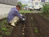 5時前に起床。日誌記入・今日の計画・農作業計画。2階で写真加工・HP入力・自治会入力をする。家のチリ箱のごみを集め、庭の草を袋に詰める。7時に朝食を済ませ、テレビを見る。8時に下代公園へ行くと、仲間がすでに刈り草を処理していた。プランターの草取りをして帰る。9時に倉庫のジャガを車に積んで、福井農園に出かける。北D1の畝2列に石灰をまいて、耕運機で耕す。溝を掘って種ジャガを並べる。牛糞と肥料をまいて、土をかけて完了。北Fに除草剤をかけて、11時半に帰宅する。