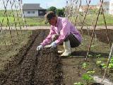 北D2を耕しました。土が重いです。 北A2にインゲンの種まきをしました。 |