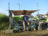 まだまだ昼は暑いです。休憩中です。 ニンジンとダイコンの畝は草が生えました。 |