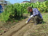 5時過ぎに起床。日誌記入と今日の計画。新聞とテレビを見て、2階で写真加工・HP入力・自治会入力をする。自治会資料を2枚印刷る。7時過ぎに朝食を済ませ、8時過ぎに福井農園に行く。北B1に肥料をまいて、耕運機で耕す。ここにチンゲンサイとホウレンソウの種をまく。北B1と北D2を耕して、10時に城山コミセンへ行く。Ha会長と民生委員推薦書の点検をする。10時半に畑に戻り、北B1に2列目の畝を作る。サニーレタスとシュンギクの種まきをする。11時半に帰宅して、身体をタオルで拭く。ヤマケンの課長がくる。