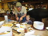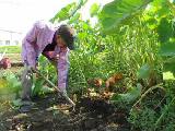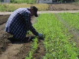 黙々とニンジンの草取りです。疲れます。 孫二人が膝に乗りますので、嬉しいです。 |