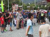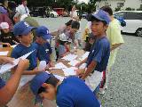 市役所の玄関前で出発式です。 井芹中での審査風景です。 |