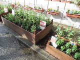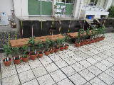 手作りの木製プランターで花の栽培です。 各学校はいろいろ工夫して、参考になります。 |