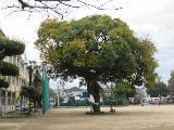 古町小学校の正門です。ソテツが迎えます。 校庭のエノキは、シンボルツリーです。 小学校は歴史が古く、樹木も大木になります。 |