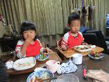 孫二人もたくさん食べるようになりました。 すこし落ち着きがないのが気になりまする。 |