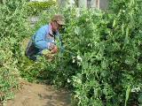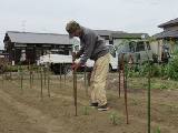 エンドウを初めて収穫しました。 ピーマン2列に支柱を立てました。 |